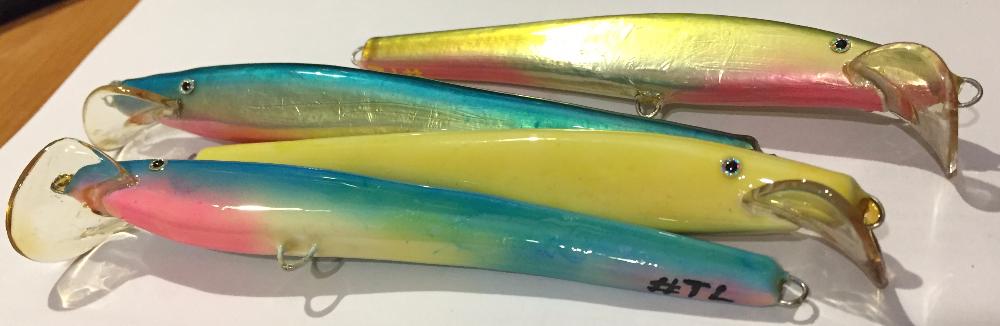 Процес изгововления у меня выглядит так (из липы):выточил тело, сделал продольный пропил, врезал лопасть и приклеел ее, изготовил каркас , вклеел его вместе с листовым свинцом для огрузки. Затем загрунтовал и в ванну на регулировку, для изменения угла и формы лопасти использую термофен Proskit.из партии 30 шт в настройке нуждаются 15-20 процентов воблеров, после 2-3 минут регулировке 99 процентов воблеров играют на отлично. У меня нет одинаковых воблеров просто есть похожие, так как все корпуса точу на глаз. Так что лопасть вклеить в последнюю очередь не получается.Slawich писал(а):Tramp, ловят и на морковку,и на пробку(говорят,даже пивную),ловят даже на ПОКУПНЫЕ воблеры!)))А чем лучше вклейка лопасти перед покраской,если условия позволяют обратное?Странно.