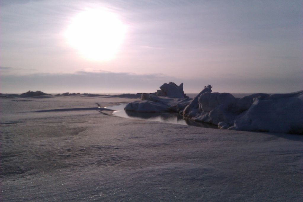Суббота. Лохусуу 20-21 километр (впрочем это и не Лохусуу уже вовсе). Длинная дорога в утреннем тумане. До трещины на 12 километре еще какая то жизнь, после лишь следы от снегоходов да еще недавно курсирующих туда-сюда машин. Приехали, договорились далеко не расходиться, навигаторы не у всех, а в таком молоке можно конкретно заплутать.