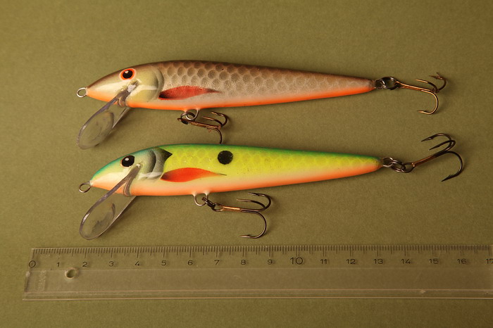 Голавль, окунь, щука, на нижнюю расцветку хариус неплохо пойдет, ловил уже, а на среднюю кумжа и окунь в реках Карелии. Игра высокочастотная, ближе к фэтам. Сниму видео, если интересно) На следующих воблерах попробую нормально натянуть фольгу, научился неплохо ее катать, фотка ниже