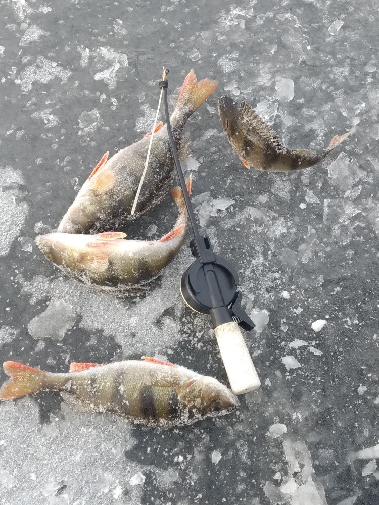 Я же сегодня с утречка, поначалу с опаской, затем пообвыкся. Лёд добрый, 7-8см,при глубине речушки в полтора метра. Однородной, у берегов и посерёдке креплскость одинаковая. Окушки и без мотыля клевали исправно, тридцать взад, троих хороших всёж забодал. Думал, пару часов всего прошло, схожу ещё на вечер, а оказалось уже давным давно за полдень. День провёл отлично, чего и всем желаю.