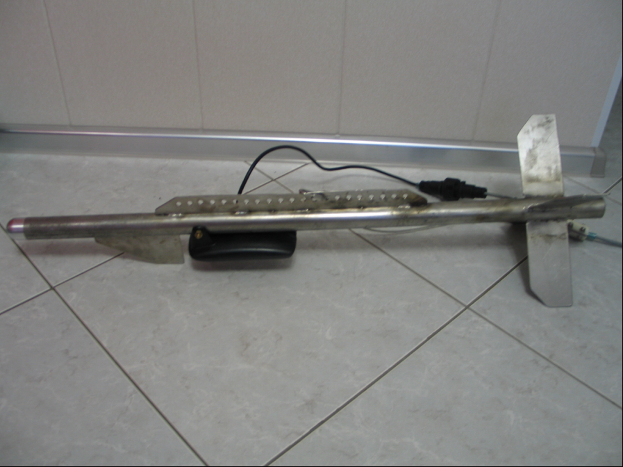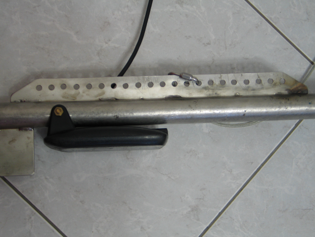 Так выглядит торпеда. Наконечник и гребень защиты датчика от удара. Буксировочный гребень. За счет отверстий меняется угол атаки, и заглубление. Хвостовое оперение. Подвес с разъемом.