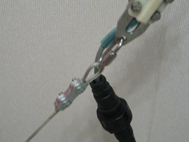 Карабин резьбовой, трос и тросовый зажим (нержавейка).