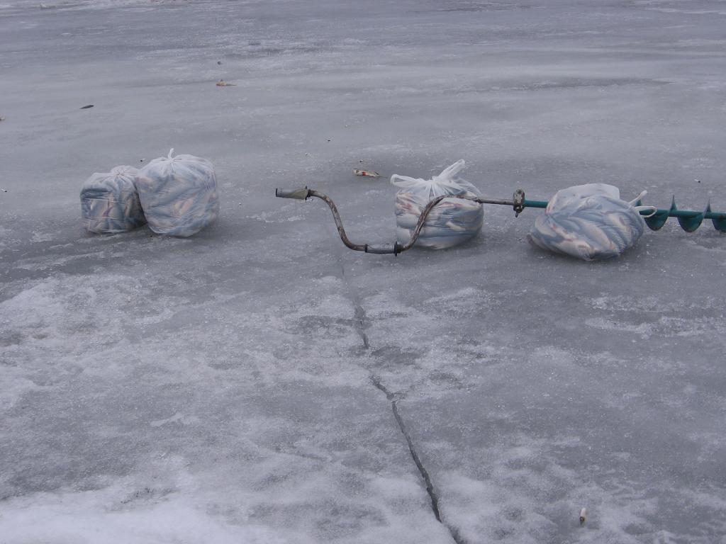 P.S Как спинным мозгом чуял, вечером перед рыбалкой заменил ножи на буре,вместо 130 поставил 150 мм и взял багорик.