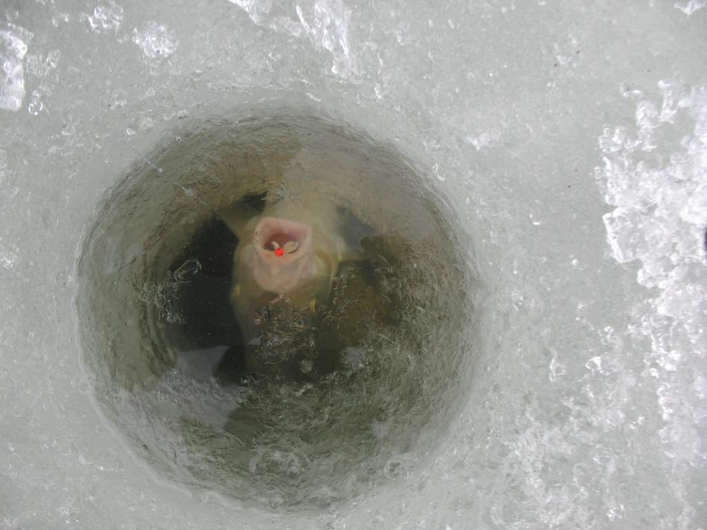 Ну не первое же апреля грю. Поверил, пришёл. А там у мну щучка, и опять в лунку не зависти, встала, и одним глазом в лунку смотрит. Ну помог в общем "багор". Щуки нет, мармышки то же