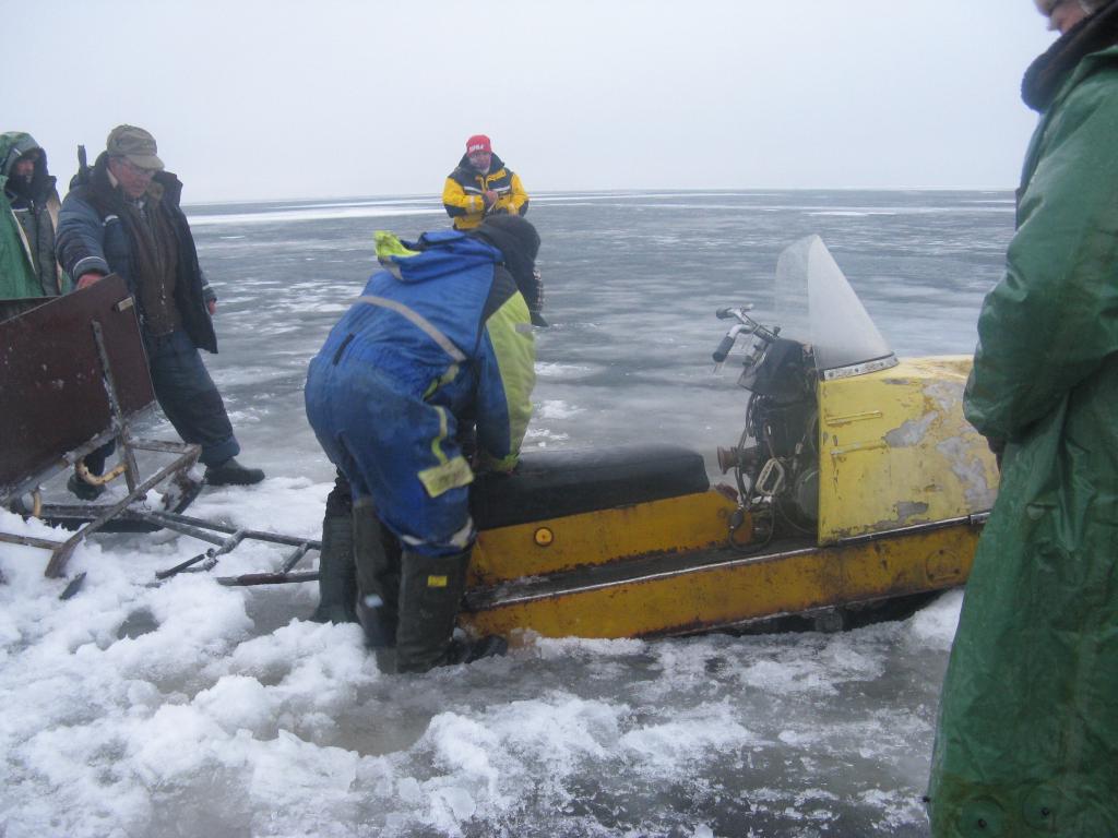 Выехали на лёд в 8-ом на больших санях, вроде всё ничего местами и режет и тут так мммм ) и мы как уеб...на бок..