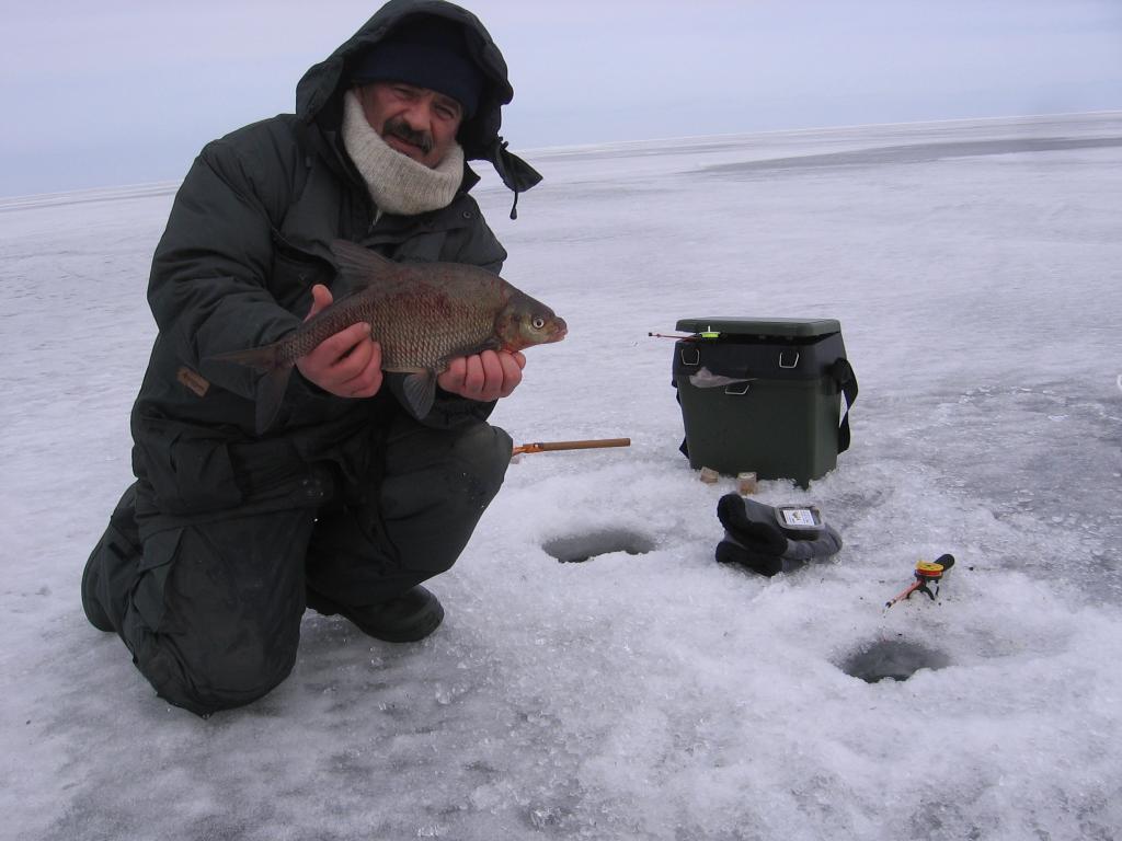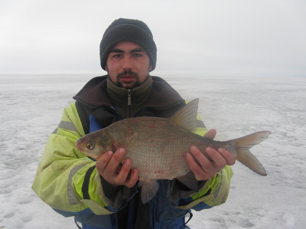 Более менее выбрались, двинулись в сторону Ранна. Лёд вроде ничего, но видны вчерашние проседания техники. не долго сумневаясь, уехали подальше, за народ. ну решили пробовать. Лёд на шнек, но как масло. На удивление, с третьей поклёвки садится плоточка. И так мало по малу начинает поклёвывать. Да нановокушки не дают скучать. В один момент достаю плоточку, опускаю мормышку обратно( а глубина под 10-ку наверно) и следует классическая поклёвочка. И приятная тяжесть тут же отдаётся рывками на том конце удочки. Поднимаю, и тут же начинаю сожалеть, что сразу не заготовил лунку на 220. Лещик( кила 2) мордой в лунку зашёл и всё. Кричу(шёпотом) про багор. Ну и приходит он, багор( Саня), и суёт свою ручищу в лунку, дотянуться видно не дотянулся, но щелбана тому лещику по губам дал. Остался я без мармышки классной. И ведь последняя была в арсенале.
