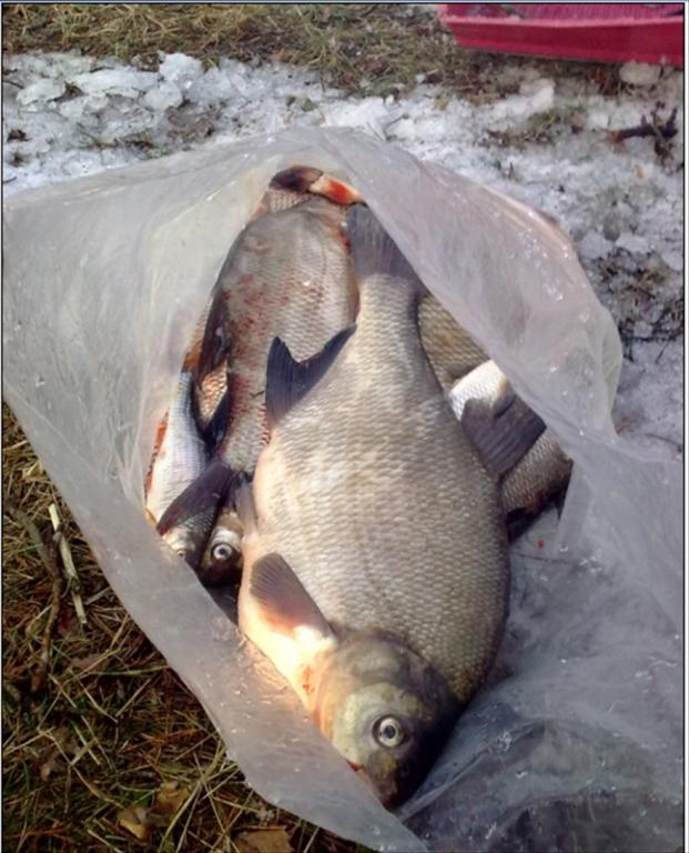 ... Вот их уловы, по полмешка лещей: