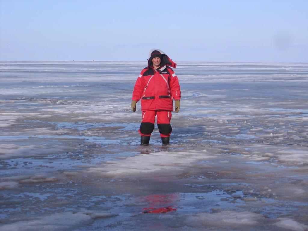 По дороге домой красота, лёд как асфальт, скорость выше 6км\ч, но сильный холодный ветер вышибает из глаз слёзы, чем ближе к берегу, тем лёд хуже... В километре примерно от берега я быстро прошёл, а два напарника приняли водные процедуры http://www.striborg.ee/viewtopic.php?f= ... 23#p152204" onclick="window.open(this.href);return false; . На берегу, отжимание одежды, переодевание в сухое и быстрее домой. Сезон закрыт. ЗЫ: Андрюха сегодня скинул свою фоту самого солидного: