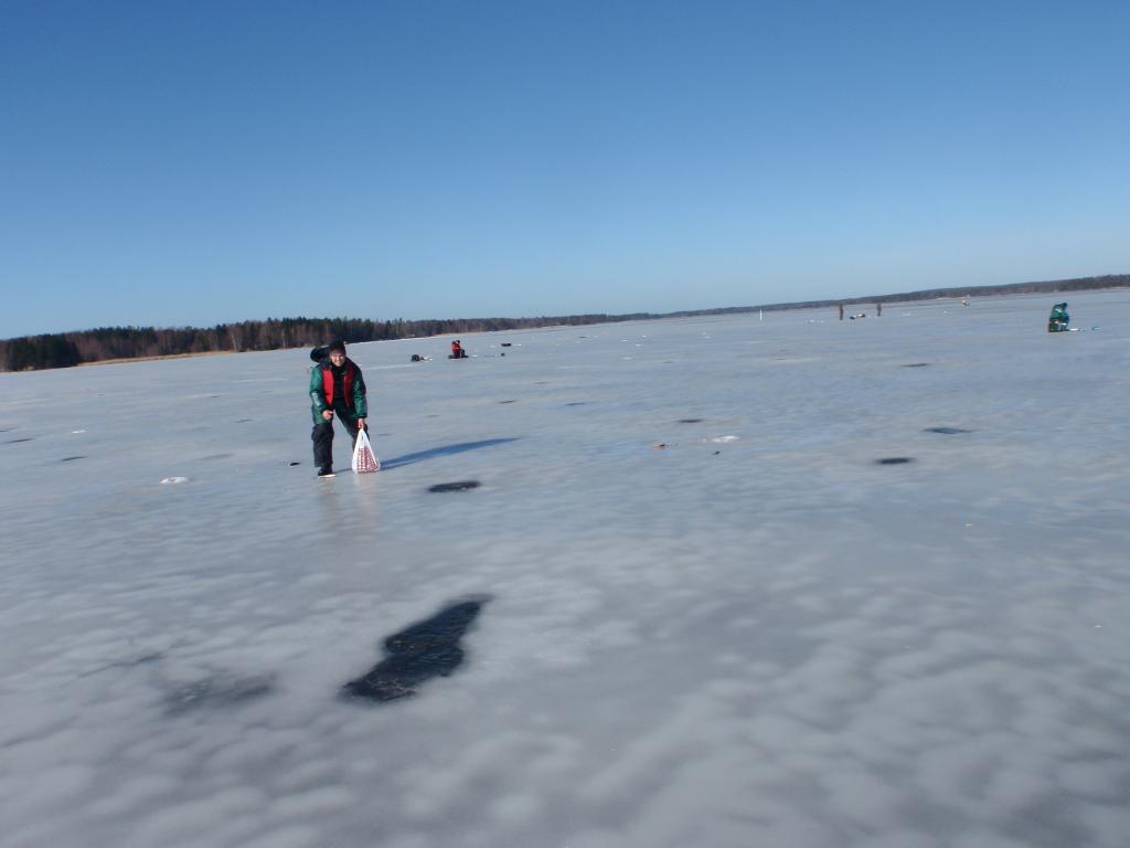 Был сегодня на рыбалочке,50 км от Хамина,на старых хорошо забытых местах! Погодка гауно,то метель то позёмка,5 минут и лунки нет,лёд такое же гуано 10-15см,в промоинах 2-3 см, нуна оооооочень аккуратно! Но не смотря на всё это,свой десяток килов полулещиков наковырял!
