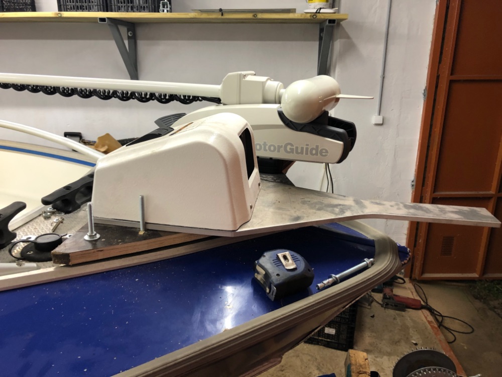 Думал, думал и решил сместить мотор ближе к килю. 27 сантиметров показалось слишком большим отступлением от линии киля. Вырезал новую площадку и сдвинул мотор вперёд. Получилось 21 см от штанги до киля. Дальше двигать не стал, так-как мотор стал выдаваться вперед за нос катера и есть опасения что он может цеплять за качельку прицепа при спуске/подъёме катера из воды. Думаю на этом и остановлюсь.