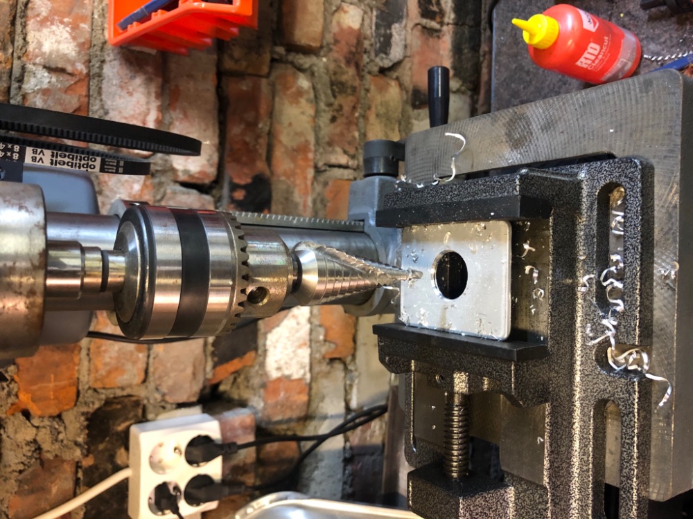 Сегодня изготовил закладную под розетку. Вилка сидит очень плотно и приходится прилагать усилие чтоб её отсоединить, а сама розетка крепиться двумя винтами М5. Закладная должна усилить пластик и придать жёсткость.