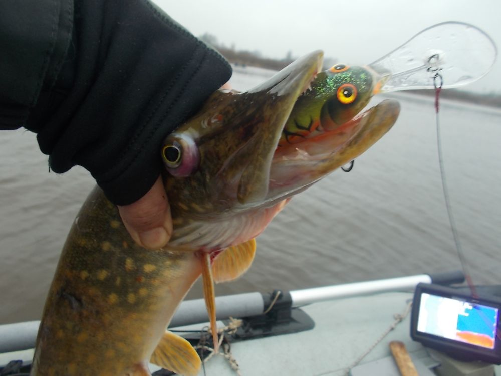 Погодка была нормальная, ветер дул, дождь шёл, рыба не клевала, но всё же пару штук взял .... и на том спасибо! Воблер работал всё тот же, или я его менять не хотел