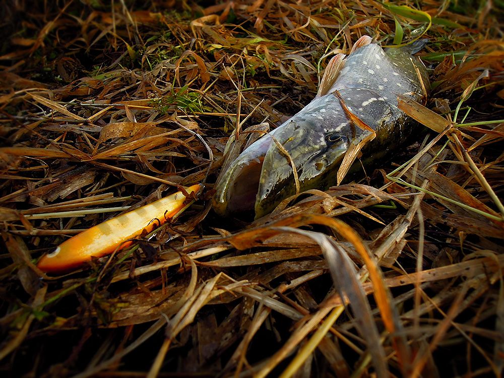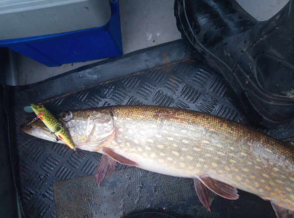 Но вот вчера всё же выбрался. Погода пасмурная, немного моросило, но терпимо. Рыбка немного кушала, но не чтоб уж очень. Что то удалось взять. Щука на 4кг. на фотосессию не попала - села батарейка(при чистке в желудке обнаружил штук десять маленьких карасиков , размером с монету 1 евро. А я ловил на огромные воблера