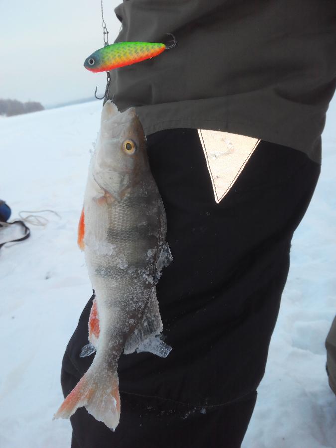 Следующим утром на рыбалке и проводки приманки сел такой окунь .