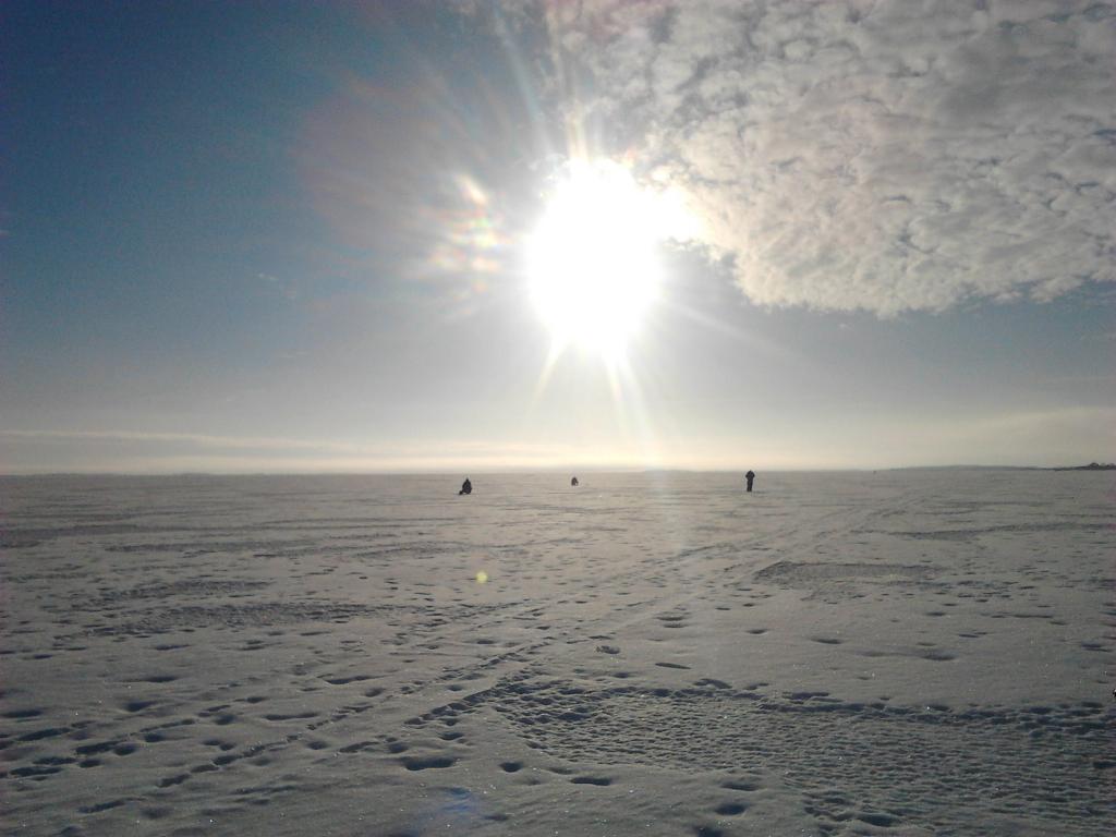 В пятницу приехал в Ряпина.Узнав,что тесть нашёл окуня недалеко от берега решили рвануть на проверенные места.Выехали на лёд с Пейпси ранда и двинули в сторону Меерапалу.Прибыв на место решили проверить старые лунки ибо вчера вся рыба(на вскидку кил 10 была поймана за пару часов из 2-ух лунок.Значит засверлился я,думаю дай ка опробую новую секушку финского производства.Опускаю снасть в лунку,тут же следует зацеп,походу сетка старая млин,или якорь закольный брошенный..и надо же было так попасть метко.пару минут подергав туда сюда скрепя сердце обрываю снасть и иду подальше от этого проклятого места.По тихоньку разбредаемся кто куда,а на наше место подлетает авто,вылезают какие то перцы и тут один из них..то ли ему сверлится было лень...херак на мою лунку и картина повторяется,мат перемат и ребята тоже срываются куда то в сторону.В общем ходил бродил...поклёвывало потихоньку,то на балансир,то на секушку с цепочкой и тройником.Самая удачная лунка принесла окуней 25 за подряд,а так по 10-15 и тишина,опят сверлис ищи.Ловили часов до 2-ух...уловы разные...у меня тазик..кил 7-8???у других примерно так же,мож поменьше.Один же из нашего экипажа отличился..4 хвоста..ходил,бродил,сверлилса..не повезло.Он первый и поднял тревогу мол хватит поехали в берег..ну впринципе его понять можно..