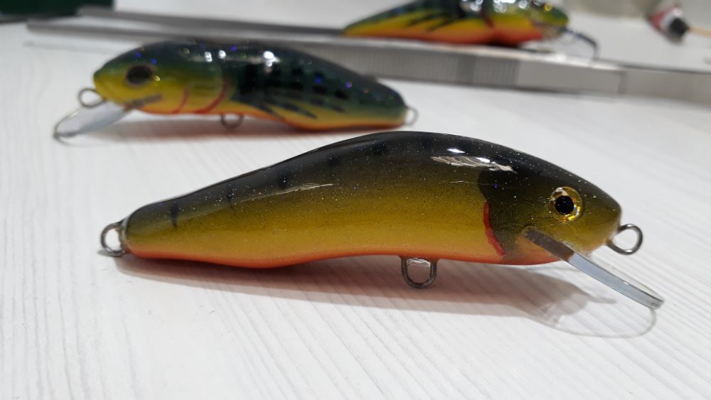 Бальза 70мм, сделал их без фольги, чтобы покрытия лучше держалось. Эта модель и цвета хорошо себя показали по гольцу, только в этих воблерах убрал фольгу и добавил весу, до этого весели примерно 8,7-8,8 грамма, сейчас 9,1-9,2 грамма, увеличение веса на игру вроде не повлияло.