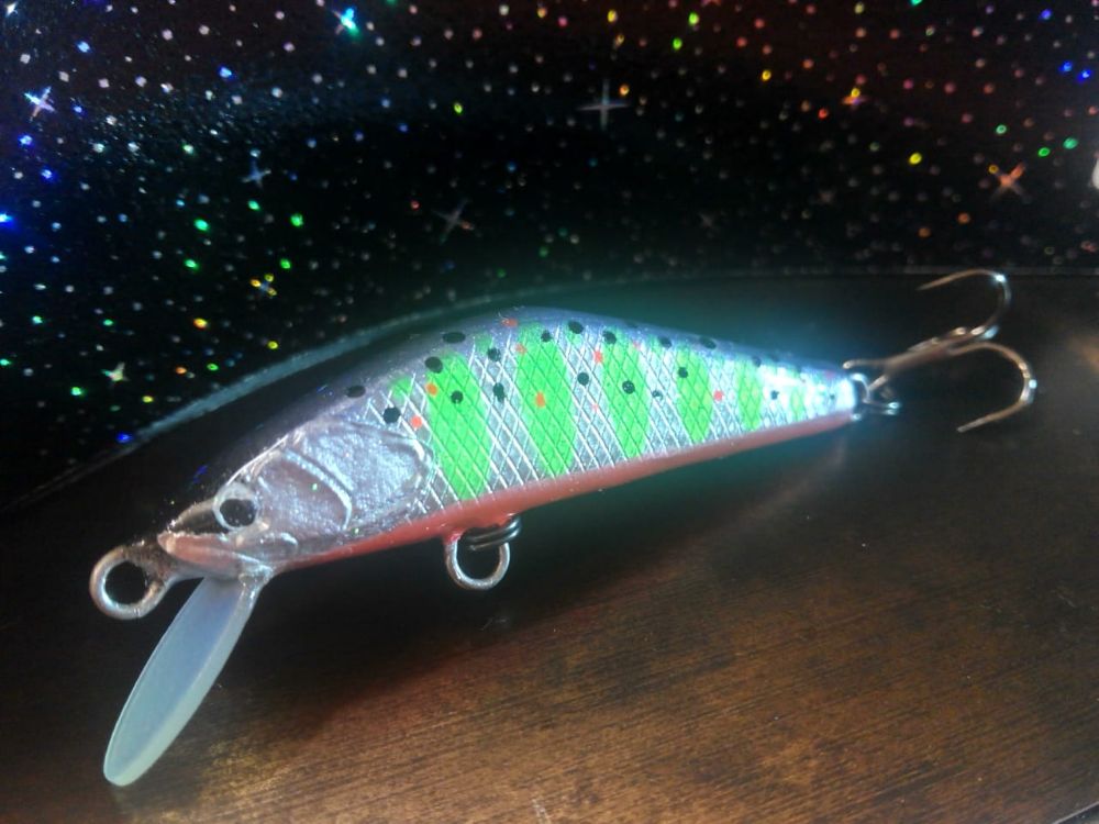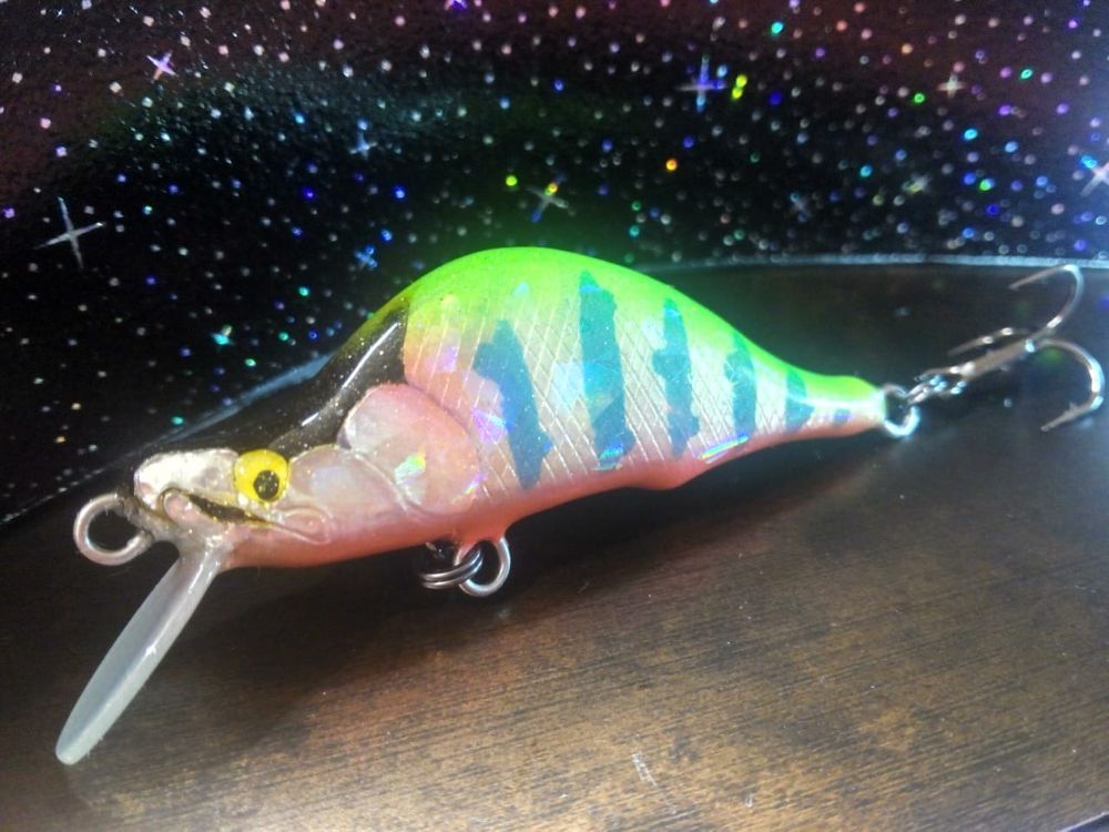 Всем Привет , воблер 50 мм вес от 3.2 до 4.2 гр. Материал ППУ , 0.8 нерж. каркас . Декокла краска , лопасть текстолит 0.8мм , финиш Эпоксид 520.