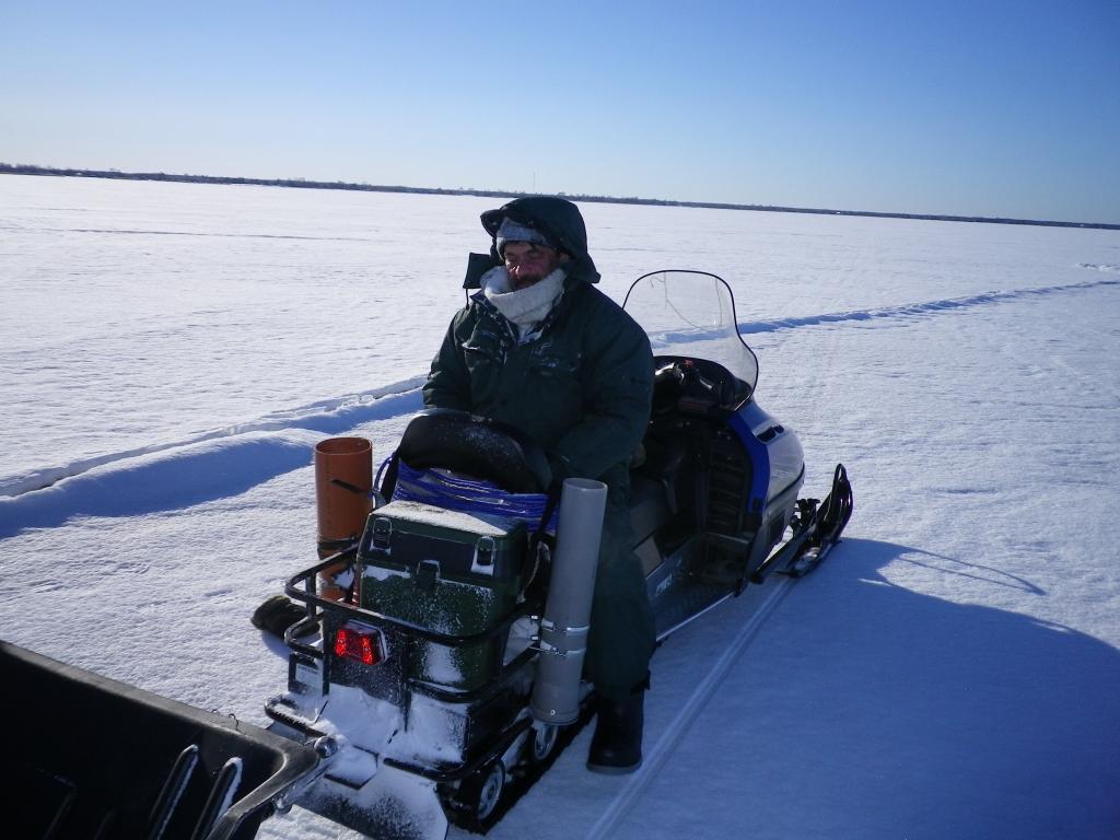Красивая плотва вперемежку с небольшим окуньком поклёвывала очень лениво. В итоге к 5ти часам у меня 6, у друга 8 и у супруги 9 (8е марта всё таки). Двинулись выезжать с озера без навигатора. В результате 30 км по озеру и выехали в Кольке. Надо признать, что езда по озеру приятная, солнце светит, скорость в районе 60 км (Land Cruiser),снега на льду см 15-20, машина идёт мягко. Так что мы нисколько не переживали, что прокатились лишнего по этому океану. Никому не рекомендую на авто без полного привода съезжать с накатанной дороги далеко или повторять наши путешествия, потому что местами встречаются наносы глубиной 30-40 см в районах бывших торосов.