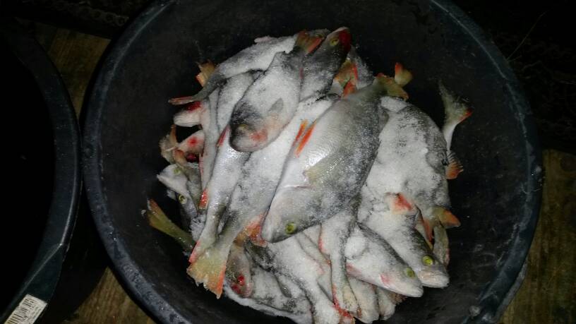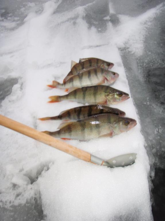 К концу дня так и неуговорив себя выползти из палатки и пробурить пару новых лунок, улов также невзвешивал, по той простой причине что колличество окуней можно было сосчитать без счёт, вполне хватило пальцев рук .