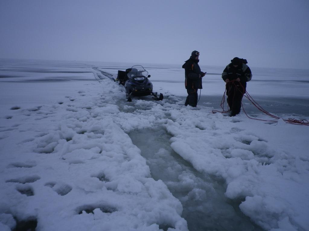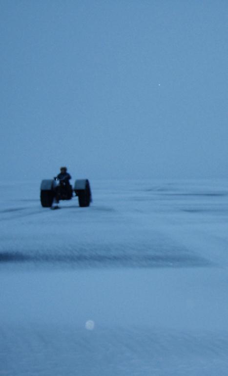 Приехали в пятницу к утру, закинули вещи в каракат, погода отменная, палатки брать не стали. Притопали на берег к саням, где было сразу понятно, кто где на них вчера сидел )) Пацаны даже не стали ссориться из-за мест, а просто погрузились в свои же трафареты. Рыбалить начали на 7-8 километре, аккурат по симпотичной трещине. Рыбка отзывалась, кто-то сел на плотву, обильно ее закормив, кто-то за окунем. Отличная компания, отличная рыбалка, быстро пролетает чудской день Встречались человеки на разнообразной технике, один ехал на тачке, потеряв переднее колесо. На второй день приехали на то же место, и даже отыскали свои прикормленные лунки- паставили палатки, ибо погода нашептывала что-то непристойное; клевало сначала чуть хуже, но потом расклевалось – рыбки вполне съедобного размера – ребята решили ими перекусить незамедлительно. Везет на транспорт в этой поездке...Увидел несколько необычное зрелище и попытался его зафиксировать...Что изобраено на этой фотографии? Или не разглядять? В общем, прекрасно скатались, отлично отдохнули, спасибо ребятам за компанию, а Озеру – за дивную атмосферу и прекрасную рыбалку!