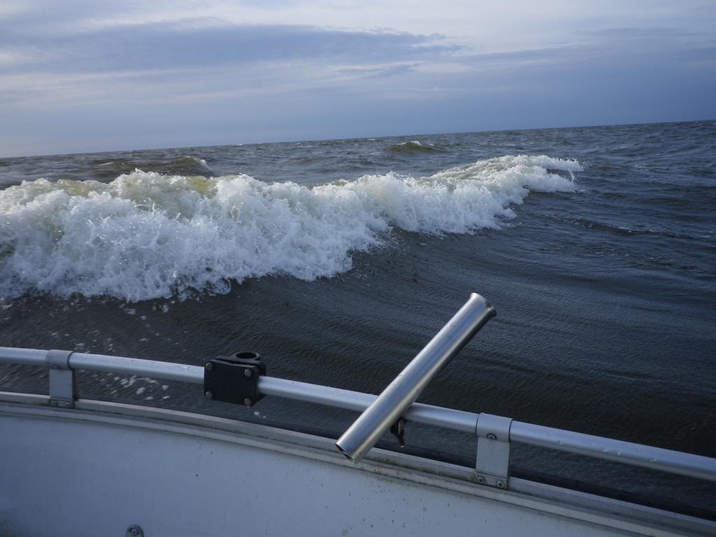 Путь наш был немного дольше обычного. Но добрались таки на точку. И даже рыбы сразу проклюнулись. Но комфорта ни какого. Вот такие барашки набегали раз за разом.