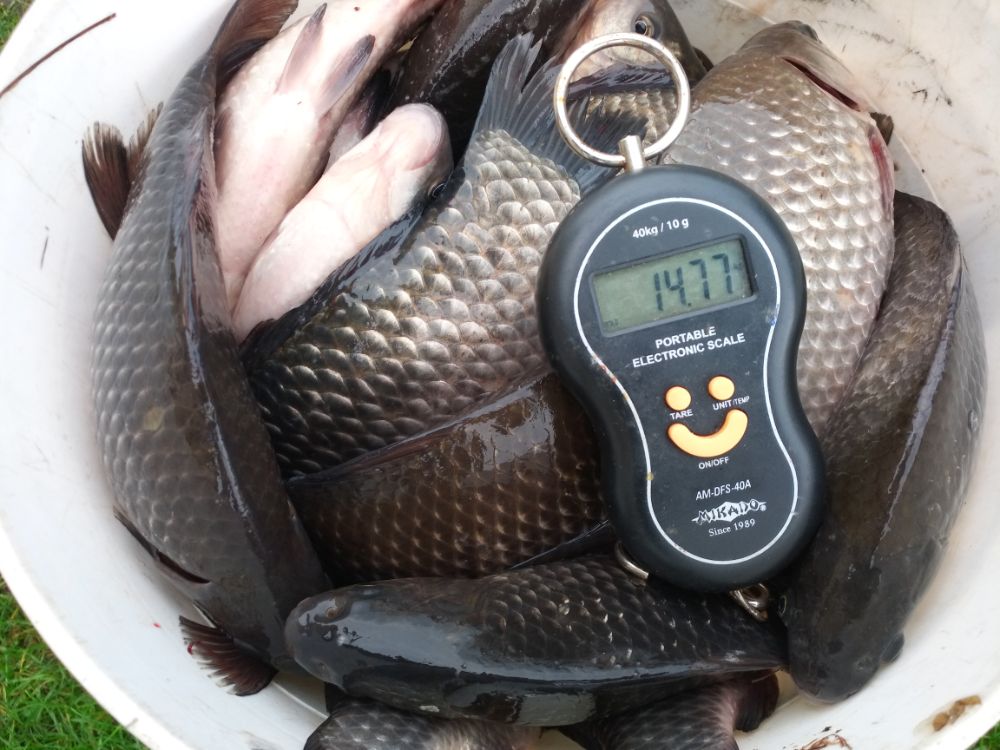 Народ уполовинился уже к 10 утра. Виктор (1777) подтянулся после полудня со своим волкодавом. Свободных мест много. Сидели рядом. Общаясь между клевом. Кроме карася в прилове плотва, густера, подлещи, две вимбы в размер.