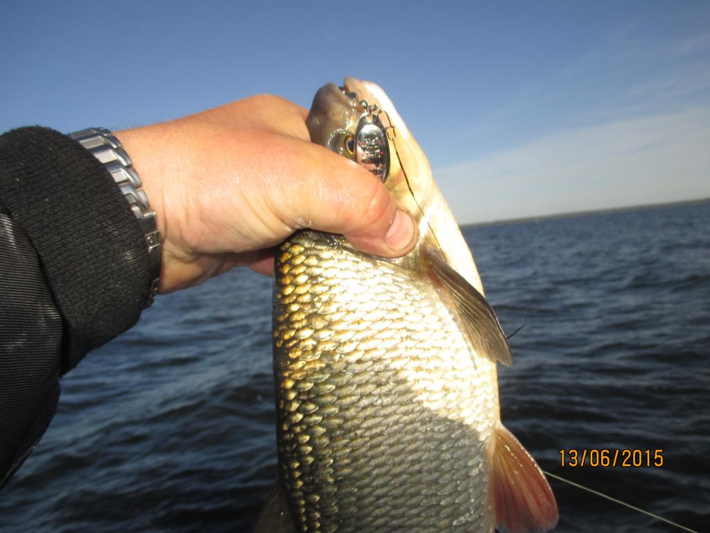 Сегодня (суббота ) не раненько ,в 4 на воде , погода ,хмурно и полный штиль , местами пытается пробится солнце , но не надолго . Как всегда начинаешь с проверенной , и хорошо не с первой проводки , на третьей удары и сопротивление на другом конце .Как всегда он ОКУНЬ .За неделю он кажется и подрос . Малька в озере ,особенно в штиль ,видно за версту , как только булькнет , не зевая тудой и там не дадут блесне проити в холостую .
