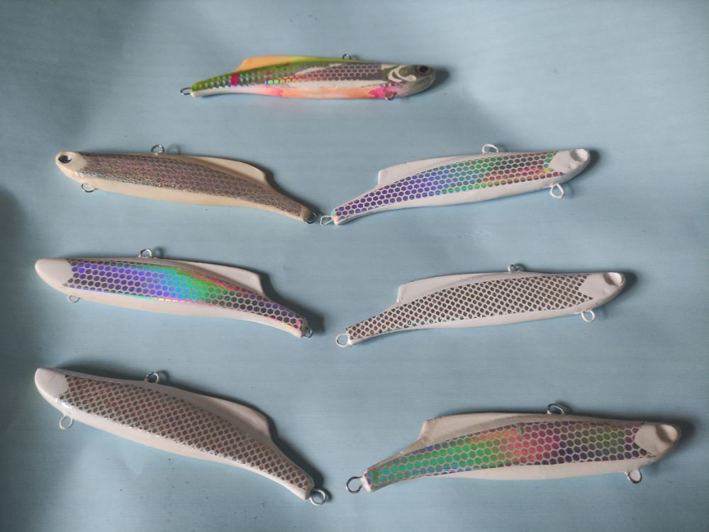 Если собирать из двух половинок, то можно сразу заложить полость под огрузку. После грунтовки в емкости с водой подобрать огрузку (прицепить к заготовке весь обвес: тройники с кольцами, лопасть, поводок,). при такой длине около 1.5 -2х грамм необходимо заложить для последующего фольгирования и слоев лака. Со стороны спины воблера сделать отверстие в полость через которую залить необходимый вес свинца. Получится очень близкий к суспендеру воблер.