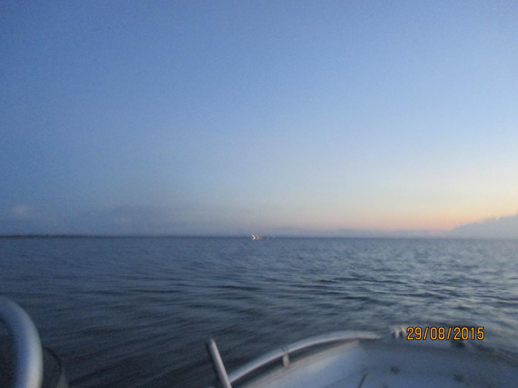 Решили все-таки воспользоваться информацией от друзей и пойти за большой рыбой. Полчаса на глиссе вдоль берега и вот мы на точке. Друзья тоже там, потягивают полосатых. Один был весьма внушительного размера – почти полтора кг! Становимся к их лодке, что-то не хочет брать. Ни у нас, ни у них. Они поясняют, что тут может час-полтора не клевать, зато потом как подойдет стадко крупняка, то начинается диснейленд, который может длится час или более, потом затихает. Пауза может быть продожительной, до пары часов, до следующей стайки.