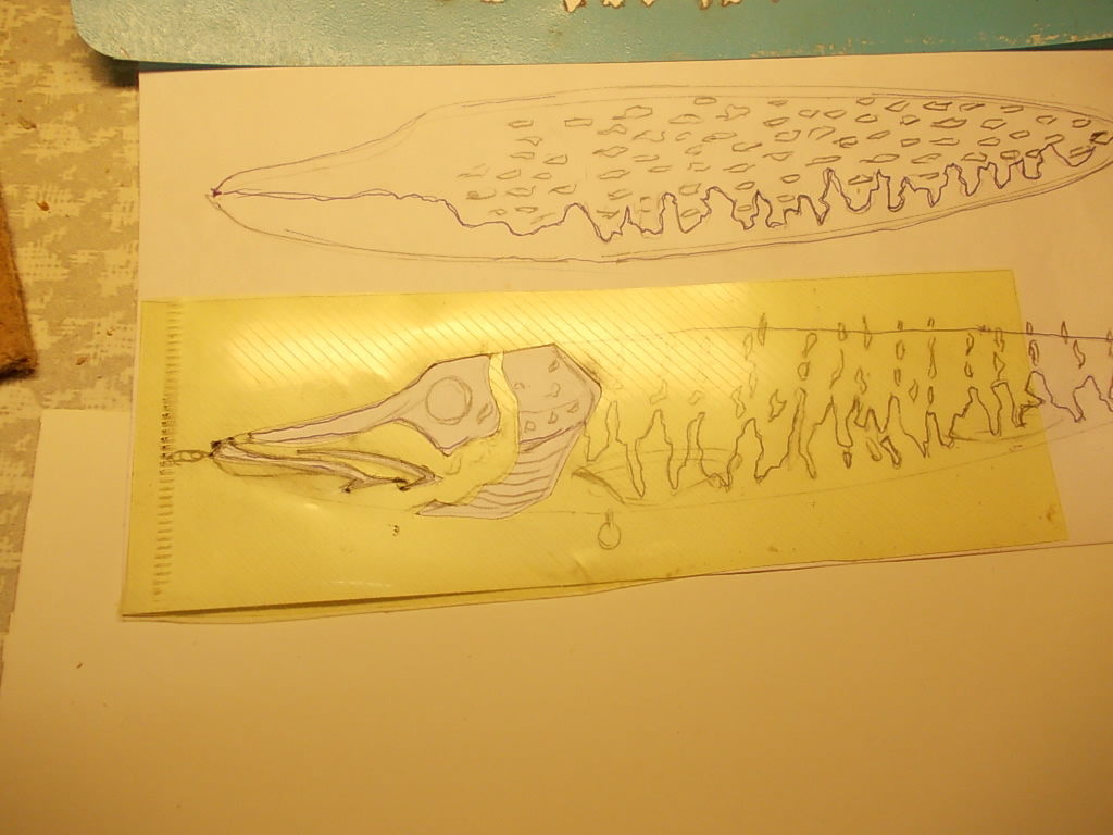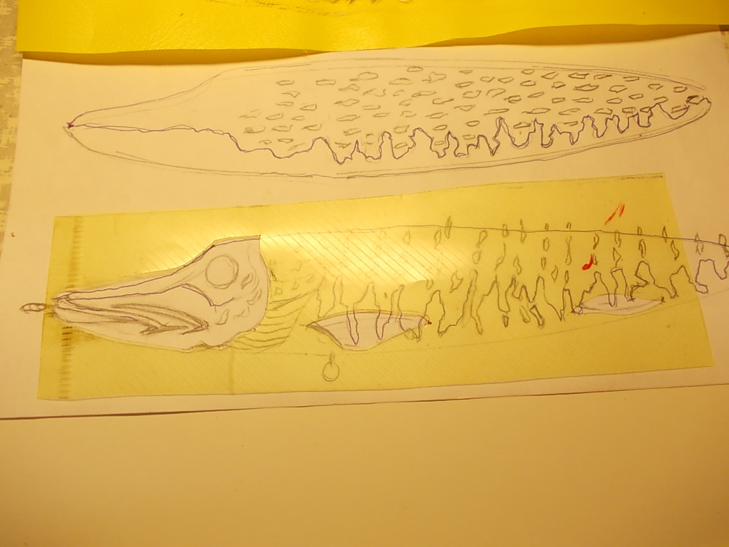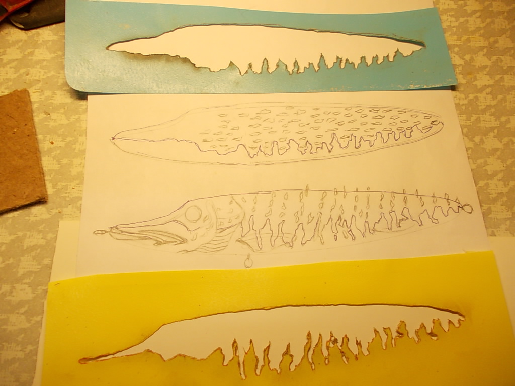 Сначало рисую щуку на бумажке ( джерка было два, нарисовал разные) смотрел на фотки своих летних щук