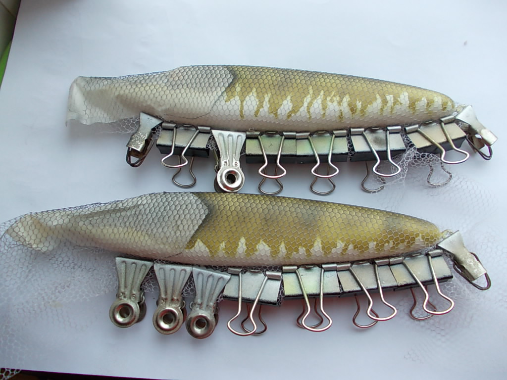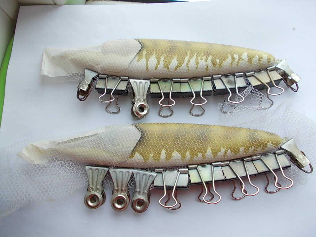 У меня сравнительно мягкая оцинковка с головы и хвоста. А еще делаю третью точку крепления. Воблеры вешаю парами, друг напротив друга - и стягиваю их за брюшные петельки резинкой как раз.ara писал(а):Я раньше денежные резинки использовал для натяжки, а сейчас тоже на мягкую проволоку перешел(нержавейку)