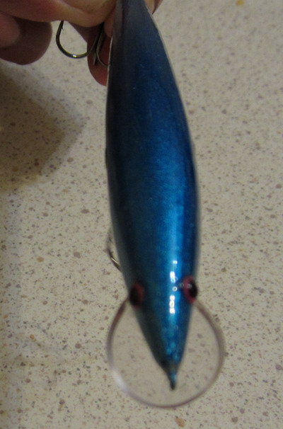 Игра у всех была похожей. Как раз вчера мой товарищ словил на подобный 3 счуки (см. зелёный в "полевых испытаниях"). Второй воблерок у другого товарища. Сегодня я откопал в своём ЗИП-е оставшийся у меня и купнул для сравнения в ванной. Как-то я совсем забыл про него, хотя верховой судачёк в своё время на него поклёвывал