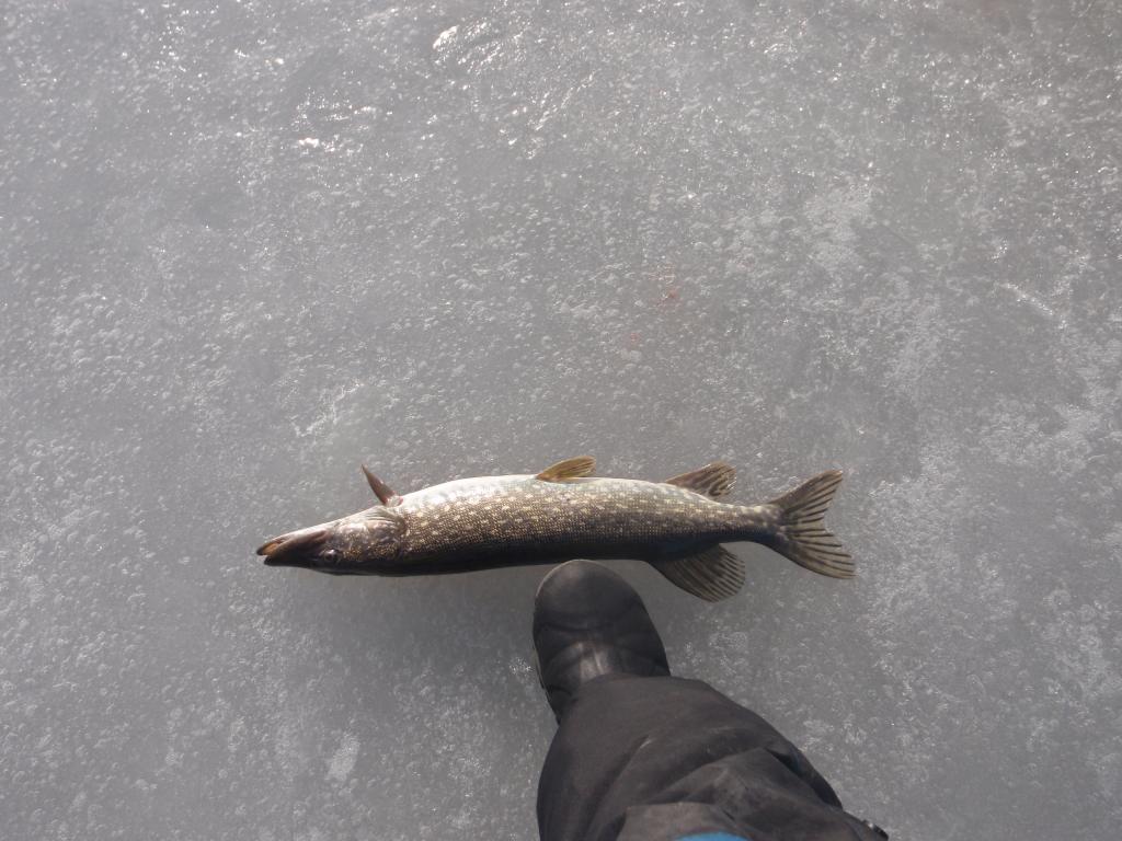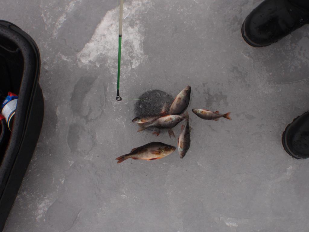 Цель была разведка и отвести душу после длительного перерыва. На 6 ой лунке цапнул шнурок,который сломал удочку,дальше я и не упирался особо,супруге на копчушку самое то! В 10 был дома. Лёд около 10 см.