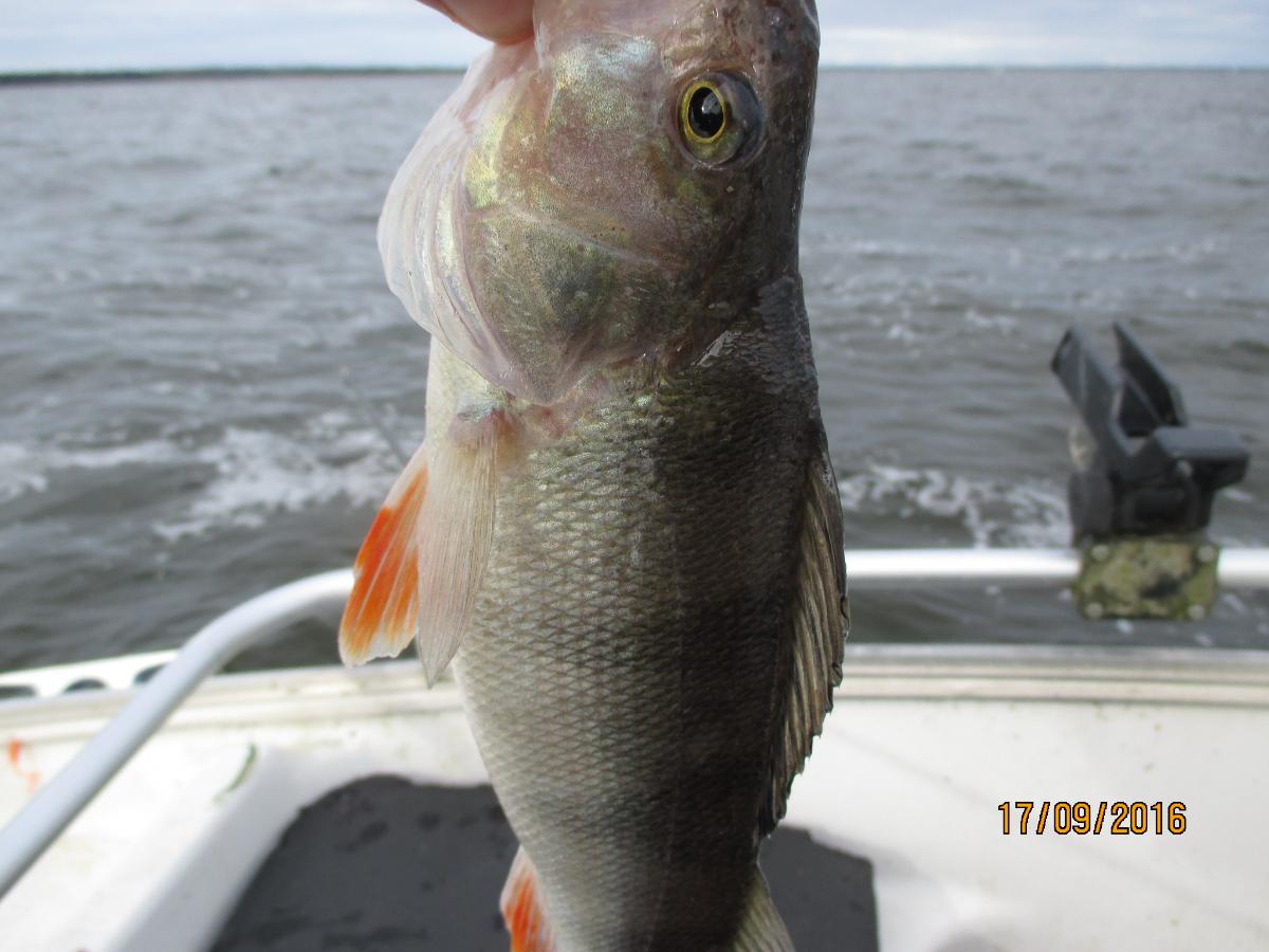 ..всё понравилось даже довольно свежий ветер не особенно мешал, окунь красивый в основном батончики,трудовые, у Светы бонус- щучка, ровно 1кг..