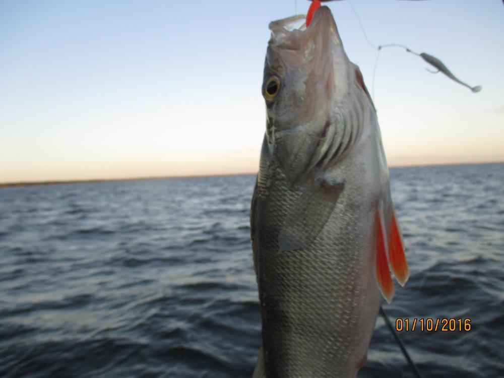 ..всё понравилось даже довольно свежий ветер не особенно мешал, окунь красивый в основном батончики,трудовые, у Светы бонус- щучка, ровно 1кг..