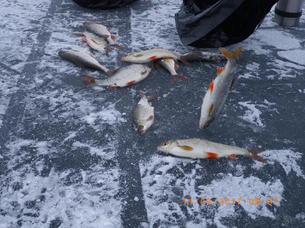 Стайной плотки не было. Была гуляющая небольшими групками. Выручала мобильность, движуха по лункам. Лески наобрывал, напутал добряче. В целом субботний клев оказался лучше сегодняшнего.