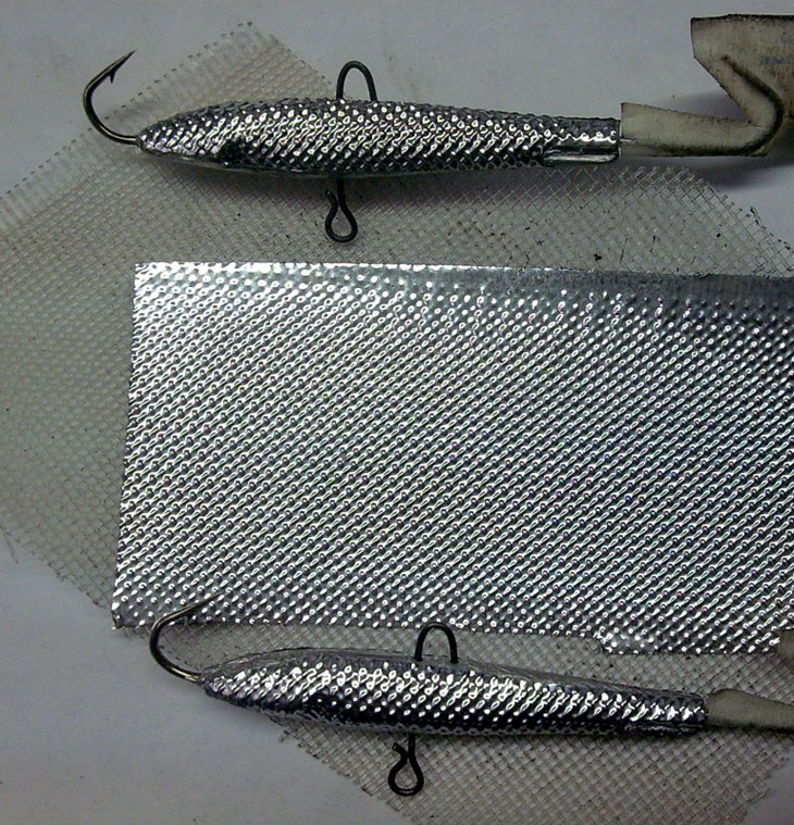 С одной стороны маскитная сетка,к ней приклеил скотч, с другой пористая ризина.
