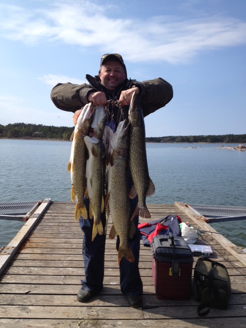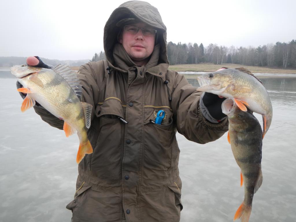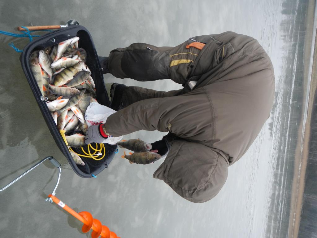 Третий крайний день прошел на тех же местах под аккомпанементы еще более сильного ветра. Утро подарило еще пару зубастых красавиц, попавшихся на жерлицы, оставленные на ночь. Лед уже был совершенно мокрым и сверлился с трудом. Окуня, наверное, тоже достала такая тоскливая погодка и питался он неохотно. Каждого приходилось уговаривать, предлагая пару-тройку свеженьких мотылей и привлекательную проводку. Тем не менее, потихоньку мешочек заполнялся и воскресенье подарило мне еще 8кг аландских полосатых разбойничков . Усталые и счастливые мы закончили эту рыбалку. До свидания и до встреч Аланды