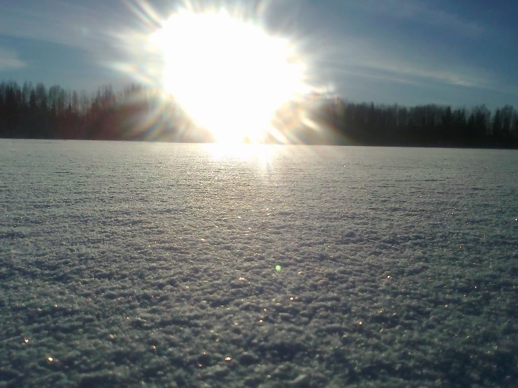 Начать наверное лучше со вчерашнего дня.Были устроены типа соревнования:кто больше снега перелопатит,снега хватало,поэнтому отрываться можа было в волю.Посля третьего подходу к снаряду стала чувстоваться усталость в руках,брать верх сонливость,но после небольшого дрёма смог осилить ещё два подхода.Так был отмечен первый день отпуска;кто говорил что мы не умеем отдыхать?Утро началось с опробования гарминовского навигатора засунутого в нокиа500;шоб его туда засунуть головешка кипела пять днёв,и всёж накануне удалось,-все едуть по навигатру-чем я хуже?(уместно сравнение:мартышка и очки).рейс изученного маршрута в 25км,путеводитель пытался обмануть меня несколько разов,я это придвидел,и когда в очередной раз я его игнорировал,он обиделся и отключился.((впоследствии оказалось карта памяти отошла),поэтому и фоты не стал пробовать,он мне сразу выдал замечание при попытки включения камеры)...Пока Игорь подЪедит,я уже во всю буду плющить рыбасов:так думал я,рыбасы думали иначе.Выйти на лёд,где бы попроще,почесав репу поняв-попроще наврятли,перемахнув метровый сугроб,и вот он берег,первый шаг,треськ;второй-треськ.Плохо шо не видно шо за лёд,но становится понятно,сразу снег мокнет.Пробую влево-вправо,чуть подале от берега,ни шагу без треска,но держит,сверлю,бур сходу проваливается,сую палец в лунку,3см,очко жим-жим.Но даж попытался половить,не клювало.Подъехал Игорь,решаем поискать более крепкие места,первое не приносит результата.Тогда,марш бросок,но ума хватло на легке,и тут не выйти.Переезд,очередной облом.Не сдаёмся,переезд,дальний поход,а так как за вещам возвращаться былоб ну оч.далече,поэнтому с полной амуницией,в лесу красота,в конце-концов добираемся до места,ещё плачевнее картина.увы.Дорога обратно до машины казалась бесконечным подъёмом.А одеты-то по зимнему,последний раз я так взмокал,когда был молодой,красивый и высокий,дело было на стадионе.И тут уж крик отчаянья-будь что-будет,провалимся,значит судьба.Выходим на канал,не провалились,лед стрёмный,но подальше от берега не трещит.По рыбалке-сказать даж нечего,такого облома и в страшном сне не увидишь.Ну да ладно,не последний раз.