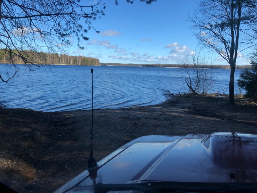 Быстрые утренние сборы и мы с семьёй на Соодла. Ветерок свежий, воды много, на берегу следы от машин рыболовов-малолитражников....