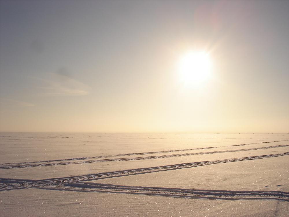 Вот и я с напарником посетил ваш Байкал. Все мне, кто уже побывал конечно, говорили, мол псих, куда ты прёшь, рыба не берёт, ходить тяжело, хочешь сдохнуть, так сделай это дома, к чему знакомых грузить проблемами.... Но у меня ж традиция на день рождения ездить кланятся озеру в самую глажь. Да и поехали аж на 4 дня. Это конечно не на пять дней как в прошлом сезоне, но тоже нормально так, рыбку поискать. Со среды на четверг стартанули. Температура по мере удаления от дома падала а изморозь и туман росли. Вот же напасть, ведь в изморозь не клювает - проверенно. В месте встречи, чуть за Муствээ градус уже упал до -22°. Часик подождали подельника из Нарвы и поехали его Хаски выгуливать. На пятом с копейками км. тормознули. Где то недалече от прошлогоднего места ловли плотвы. Трещины конечно больше нет, да если честно, то вообще кроме буранок ничего нет. Хоть бы фалос как Саше встретился, ан нет. Уж я б его, этот фалос, обсверлил не по детски. Кругом целина, глазу не за что зацепится. Мелочь пощипывала, а жирняки берибельные, не то молчали, не то отсутствовали. Весь день по честному отловил стоя, хоть и не спал накануне вообще. Даже мелочь брала секухи избирательно. Цвет, форма, игра, горизонт, всё имело значение, с кандачка хрен этот мизинец с полосками возьмёшь. Ходить тяжко, много наносов. К вечеру у напарника было шесть или пять окуней с претензией на съедобность, одна плосвица и ерши. Ловил он конечно на мормышку кружа по нашим лункам. У встречающей стороны один зачётный, но не толстый подарбузик. Я ограничился нулём.
