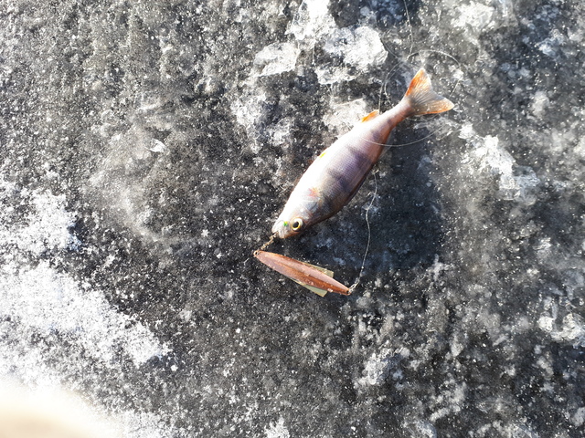 Всторонке встал на снежике и тихо так за спину подкрался, но видно что то не срослось , быстро нас покинул , удильник для пярну заточен .
