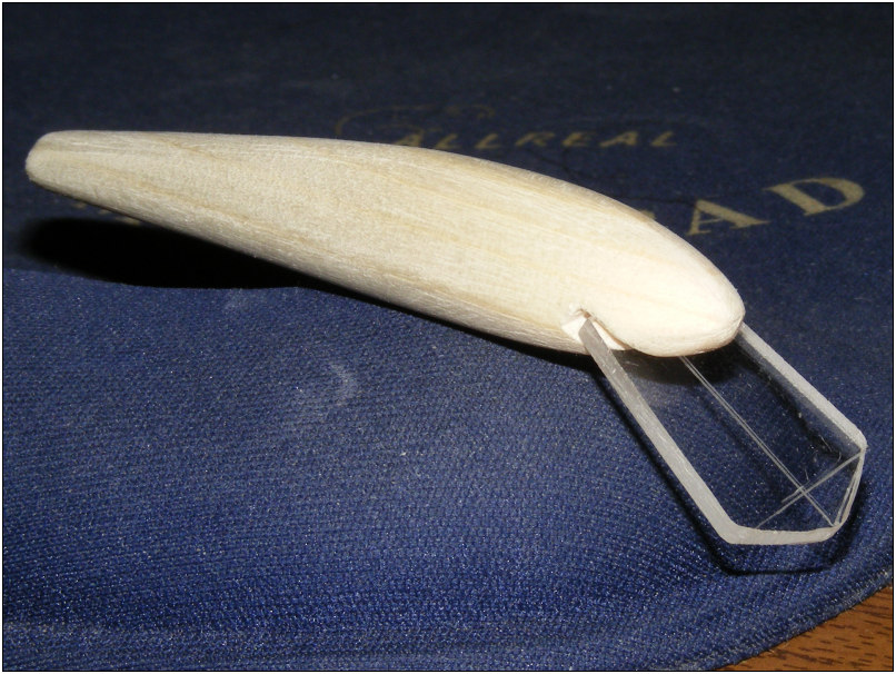 В сечнии скругленный треугольник с переходом в ромбический ( в сечении), большой диагональю в горизонт, хвост. Задумка: сделать воблер максимально устойчивый по горизонту проводки на течении, сечение позаимствовал у скатов и донных акул. Теперь вот репу чешу - какую бы лопатку к этому чуде прикрутить. Предполагаю, что за счет довольно большого соотношение ширины к высоте, раскачать его будет непросто, поэтому лопасть выбрал трапецевидную. Но что-то душа не лежит к ней - смотрится с этим корпусом как собака на заборе