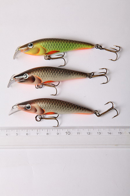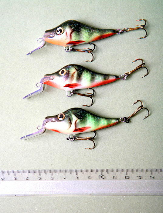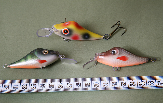 Верхний с шумовой камерой в голове, абаши. Средний абаши, а нижний реанимированный уже третий раз, из осины, последний раз он был глубинником и лопатка из оркстекла сломалась... Вырезал её с куском морды, приклеил туда кусок абаши и вот...