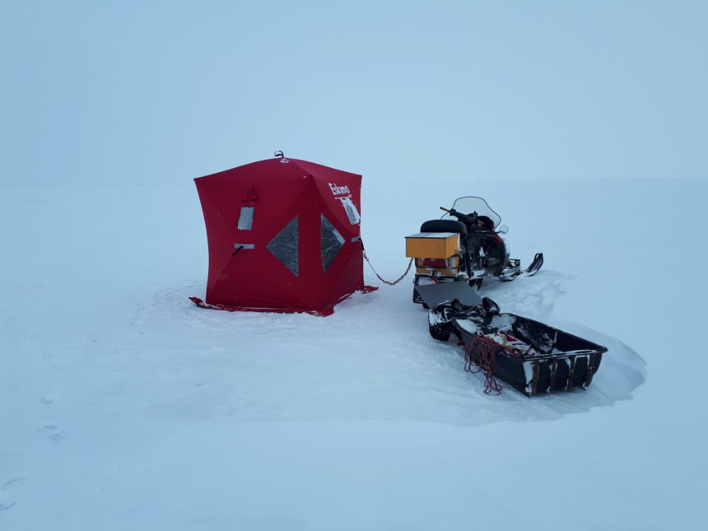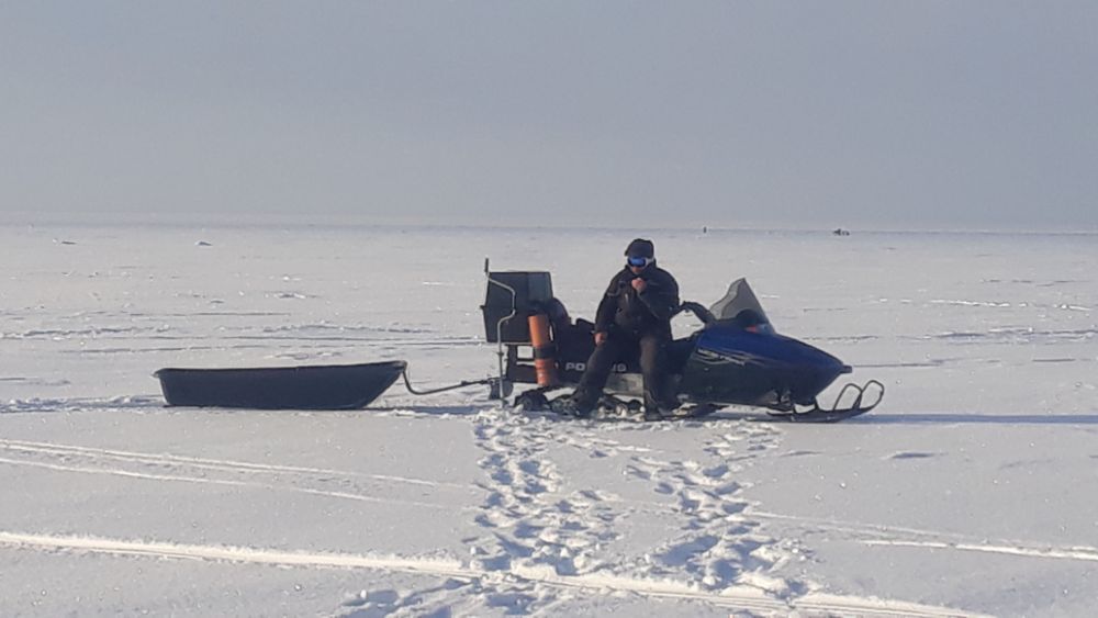 В этот раз компанией большой выдвинулись в озеро , на двух снежиках и каракате.