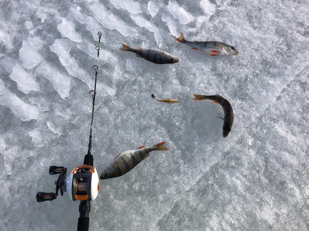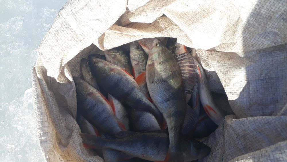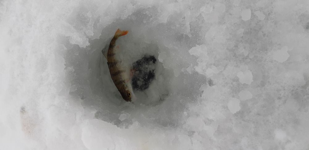 По рыбе надо сказать в этот раз без крупнечка , ловилось только забрасывай , опять же без смены лунок , пробую классическую Вадика секуху , чуток укрупнился окушарик но не сильно .