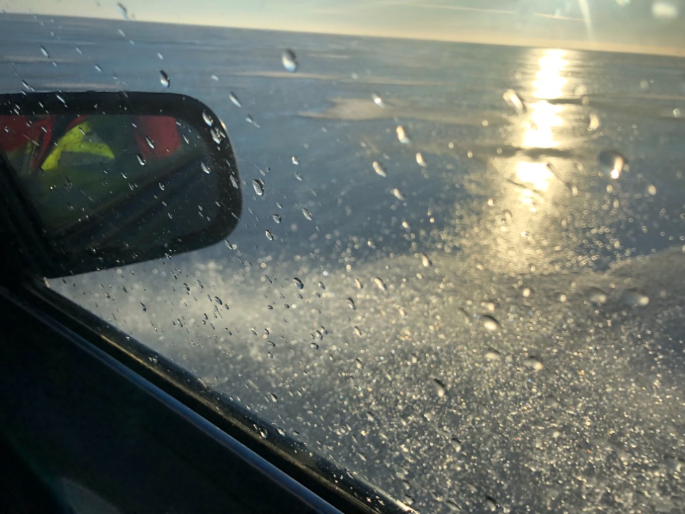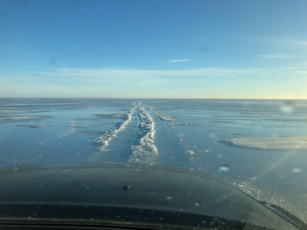 Ход действительно в субботу ,плывёшь по жиже , местами утопая в мокром снегу. Отьехав метров триста , кричат с санок , тонут , пришлось возвращатся в берег за другими .На пол пути снова останавливают , промокли до труселей в санках , Макс отказывается ехать дальше , буду тут типа сушится.