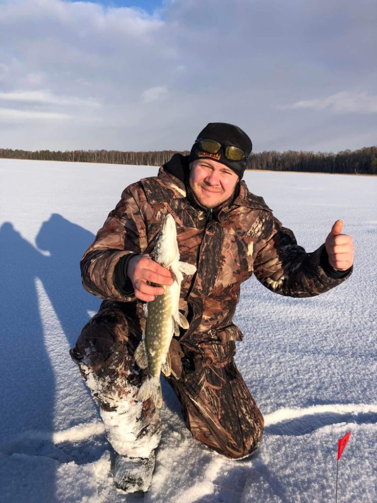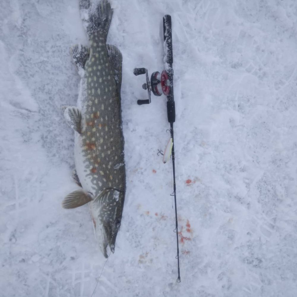 Затем ещё наверное размотки 3-4 за полчаса,и точно такие же...Настраиваю раттлины...На одной из лунок чпокс-и моя новая удочка,новая катушка и новый раттлин теряет девственность, её чпокнула щука!!!Но сходит у самой лунки
