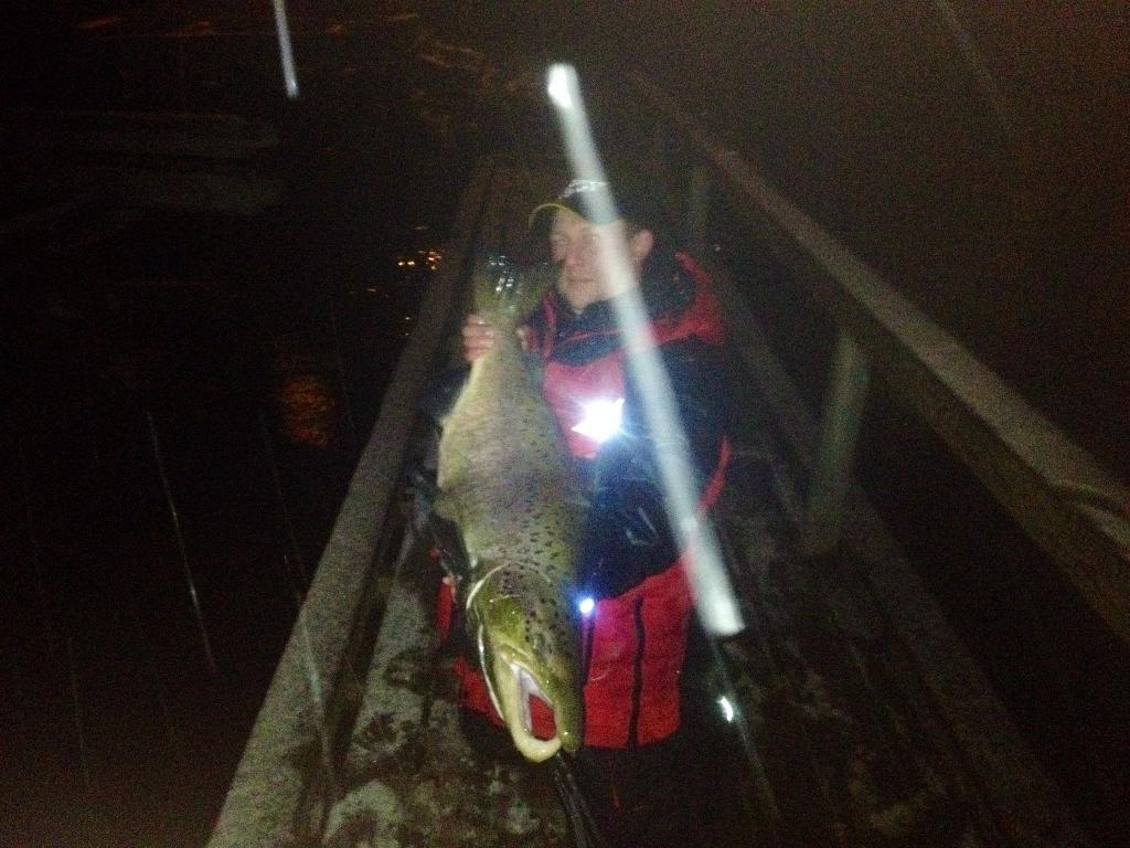 И где-то после 6 на недолго ключили рубильник с клевом и рыбка пошла. Сначала пару сундучков стандартных околокилушных Ну а чуть позже случилась именно та поклевка, за которой сюда рыбаки и ездят. Рыба взяла метрах в 30 от мостика. И борьба пошла
