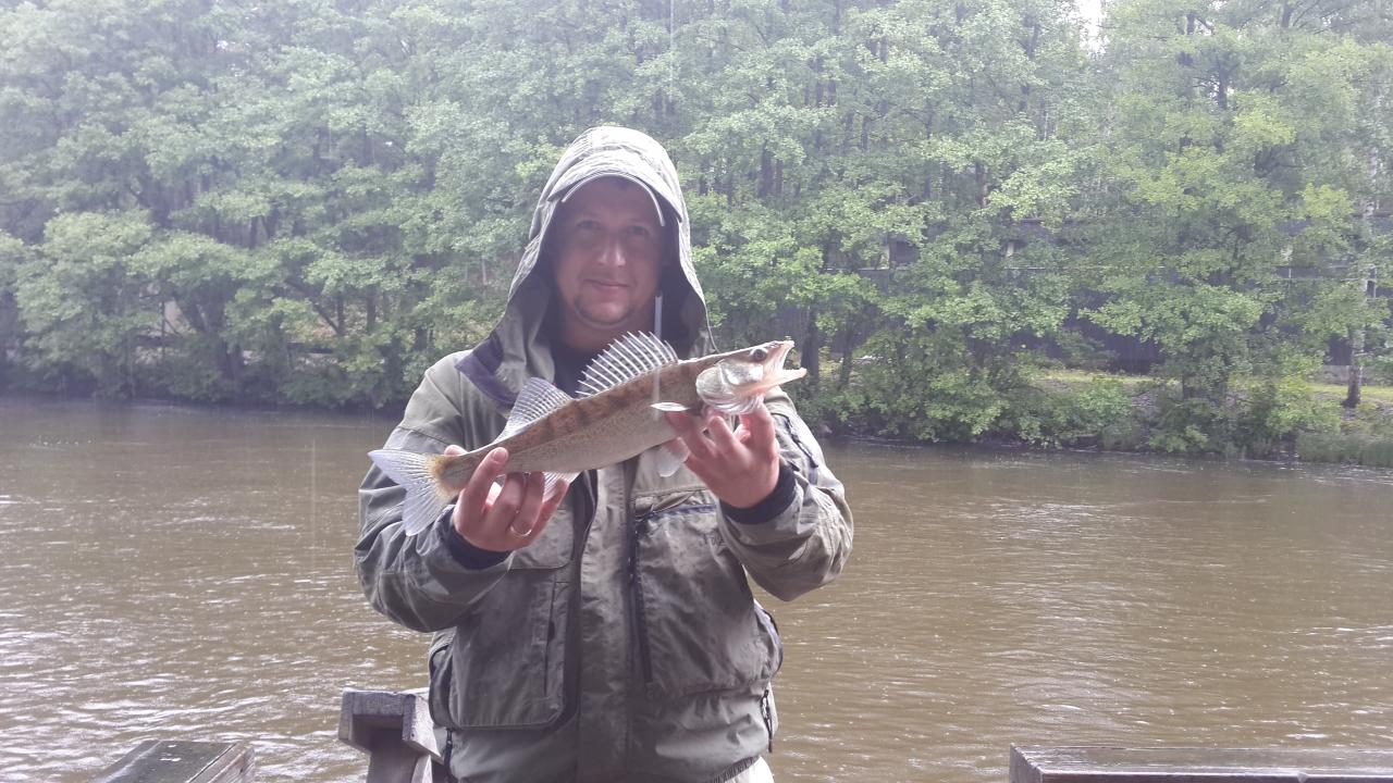 Дождик перестал и мне удалось еще половить часиков до 12 ночи. За это время было всего пару поклевок, один сход радужки на воблерок "воробей" от Алекса78 и судачок небольшой, которого отпустил ввиде недороста. Вообщем на этом решил сей день закончить, ибо утро вечера мудренее
